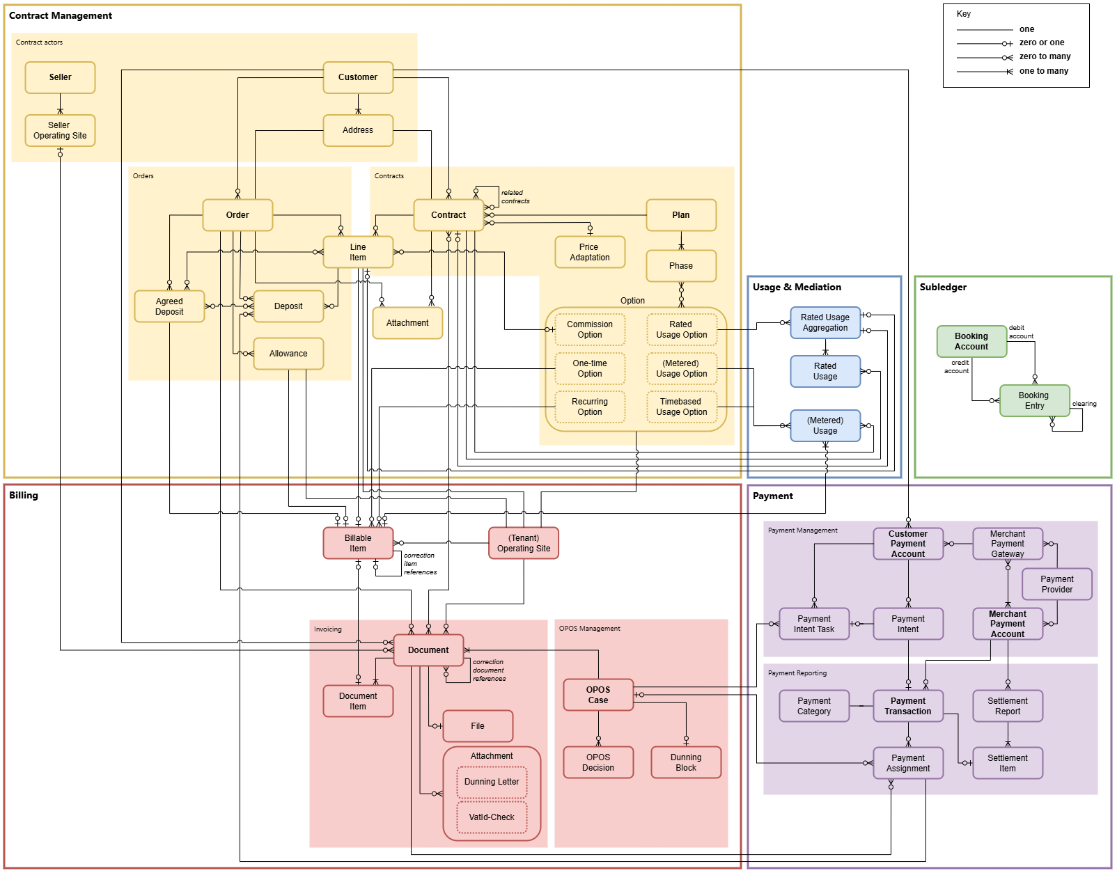 The objects are linked using crow's foot notation to describe the type of relationship between them.